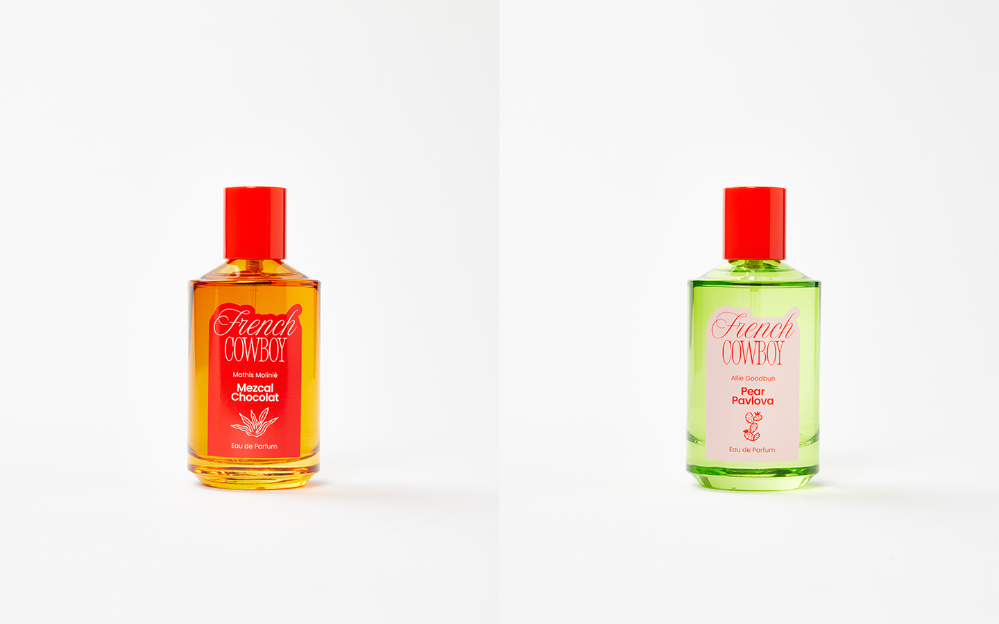 Pear Pavlova est né d’une collaboration avec la danseuse contemporaine Allie Goodbun. Le parfum s’inspire du mouvement, de la légèreté et de la gourmandise aérienne entre fraîcheur fruitée et sensualité musquée. Mezcal Chocolat est cocréé avec le chef français Mathis Molinié. Il évoque la cuisine, du feu et des accords inattendus entre épices et chocolat.